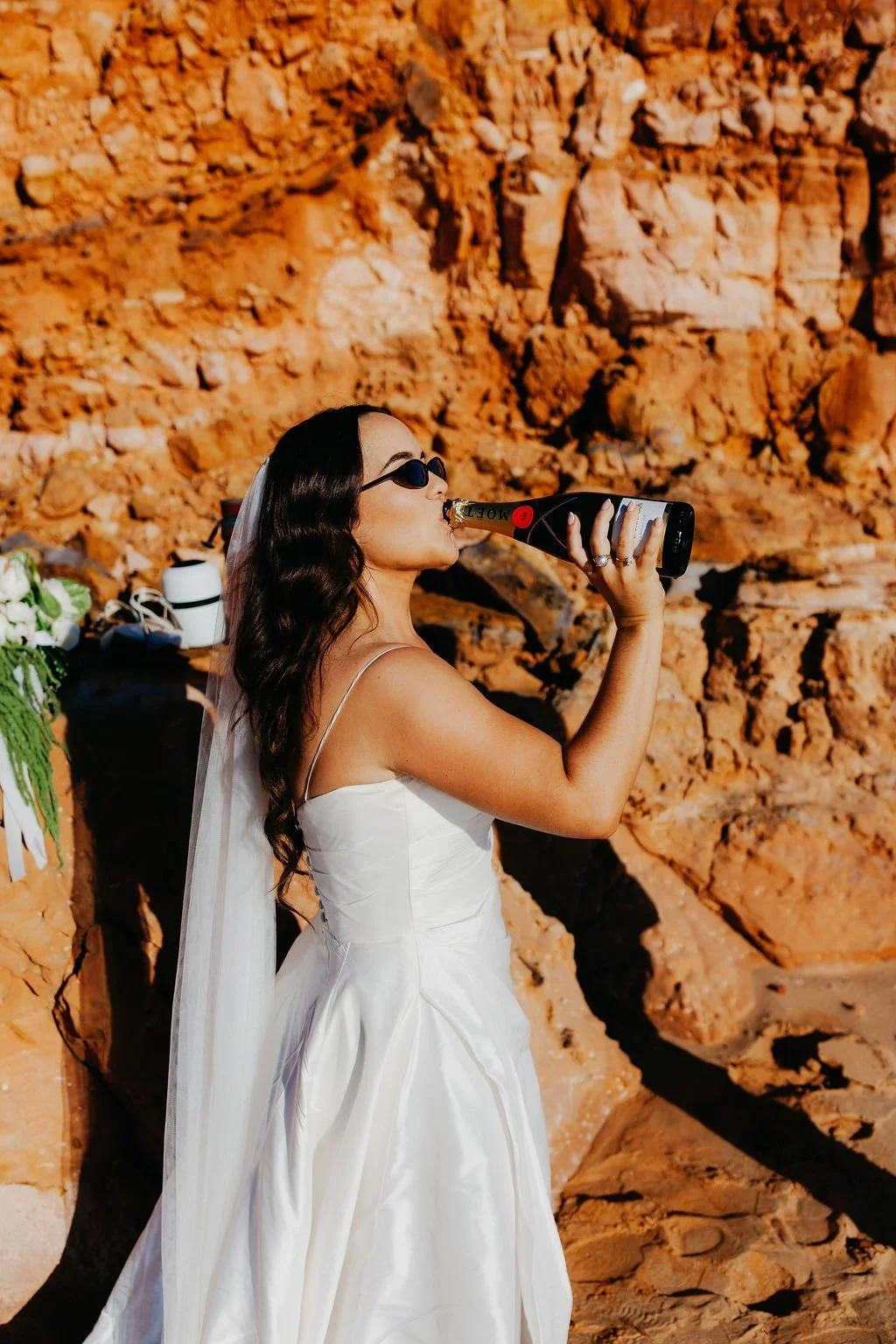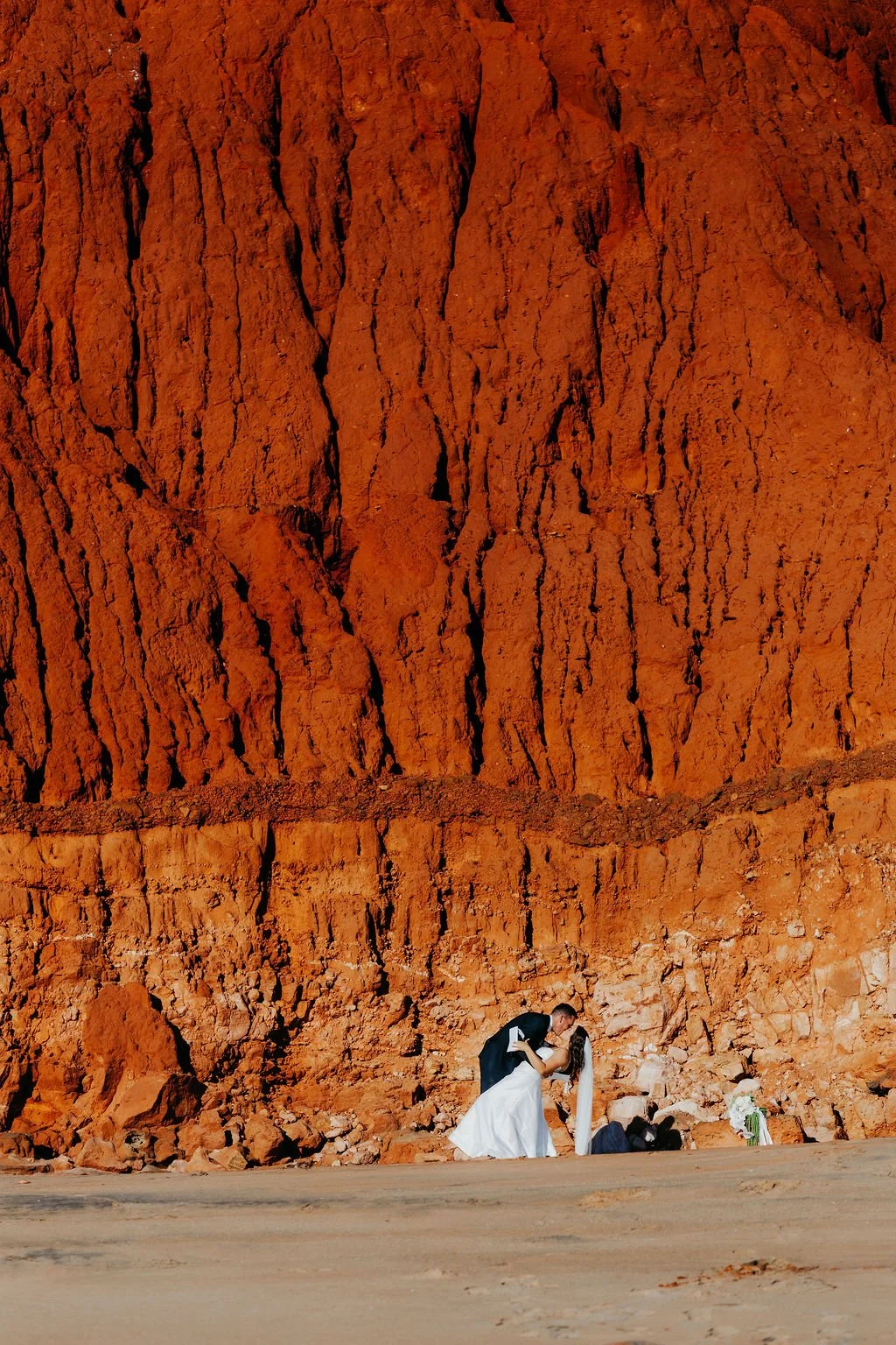 What a journey of a day! Allee and Nathan exchanged their vows on the rugged red cliffs of James Price Point, with the turquoise ocean stretching endlessly behind them. 🌊❀️
